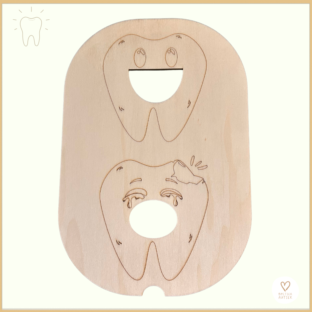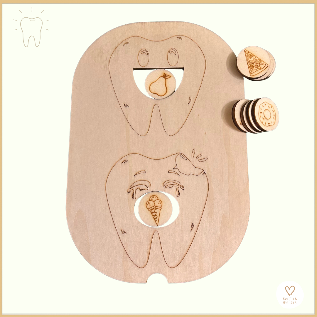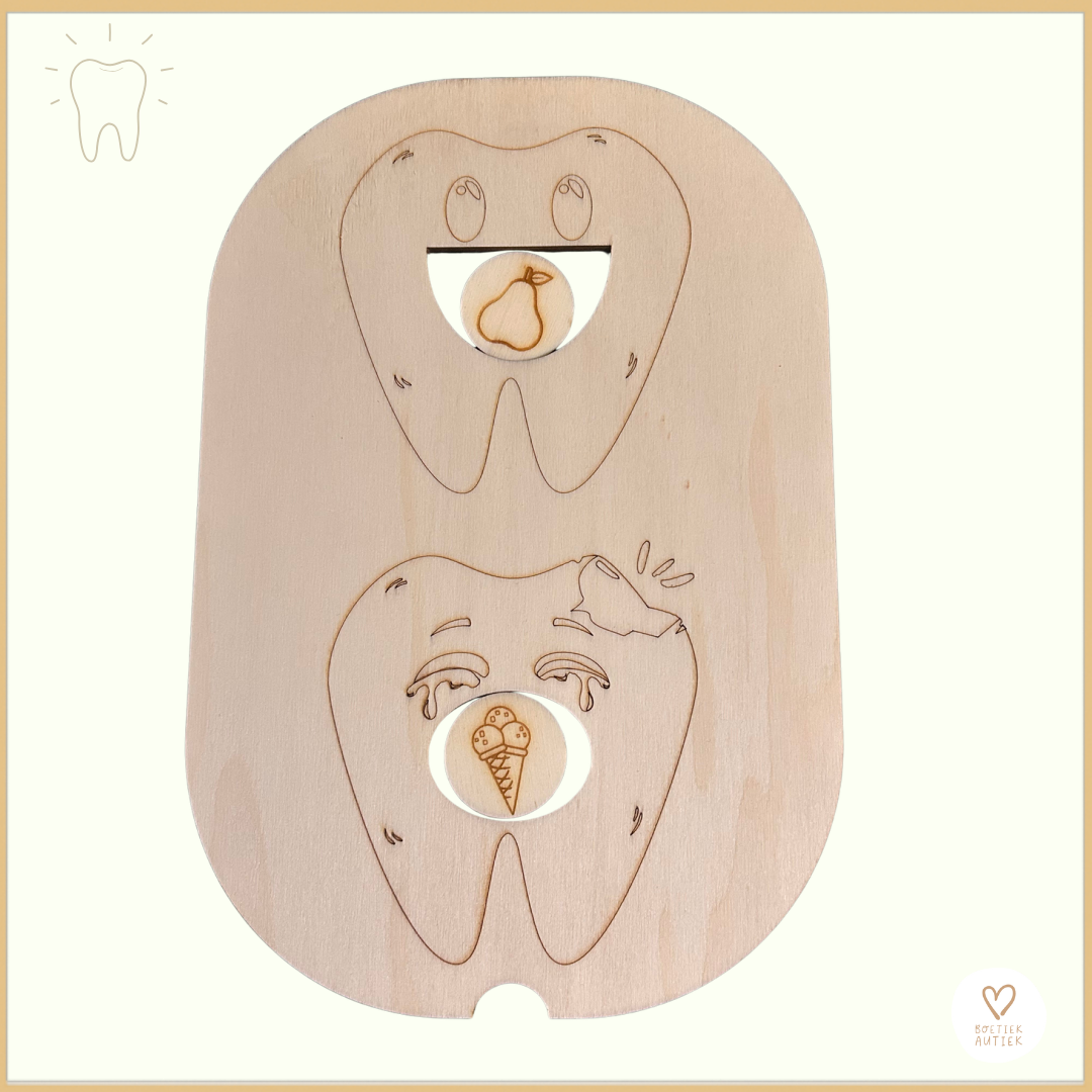 1 themadeksel - gezond & ongezond - de tanden - klein (kleine Trofast - Ikea) (afm. 27,5 x 18,5 x 0,7 cm)