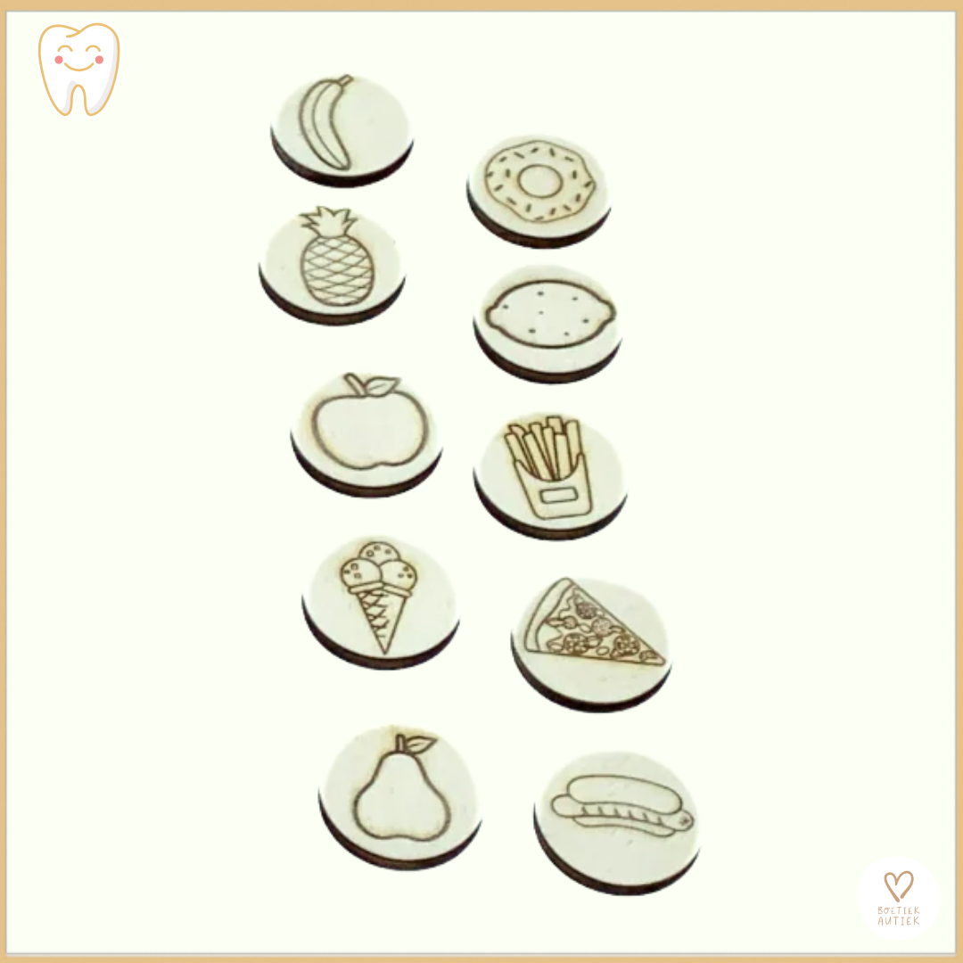 10 houten voedselkaarten (afm. diam. 3,5 cm)