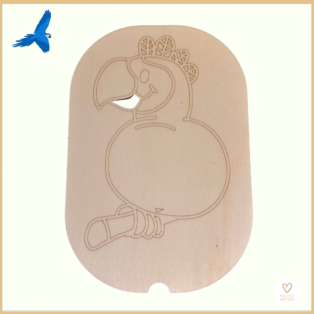 1 themadeksel - huisdieren - papegaai (kleine Trofast - Ikea) (afm. 27,5 x 18,5 x 0,5 cm)