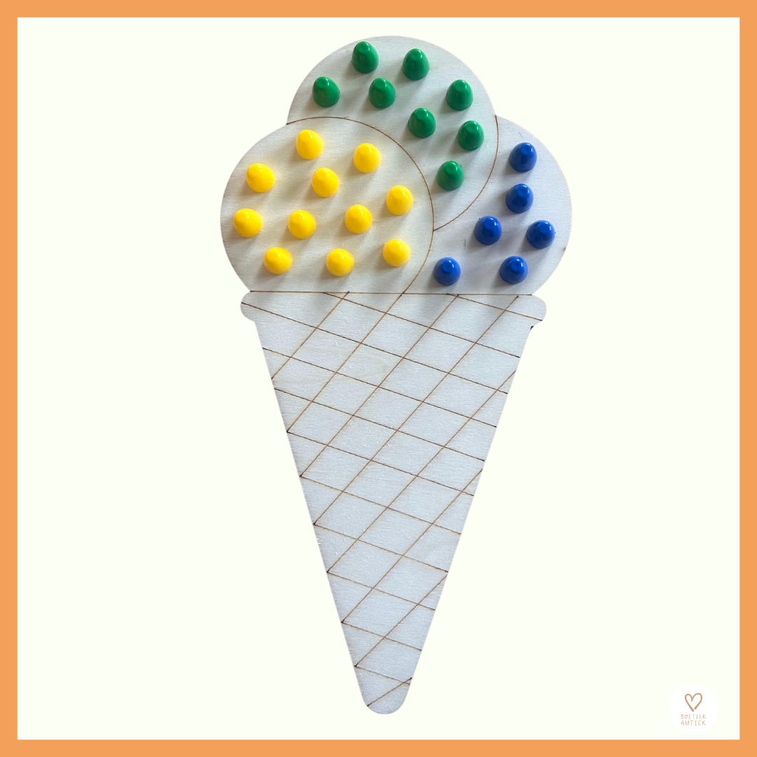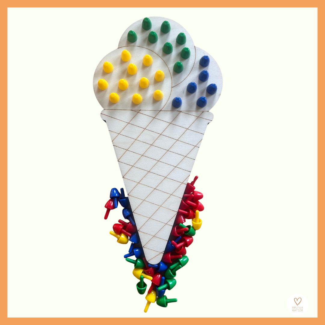 Door dit ijsje te versieren met je favoriete 'snoepjes' oefen je jouw fijne motoriek en ruimtelijke oriëntatie. Kies zelf hoe je jouw ijsje versiert of gebruik de opdrachtkaarten.