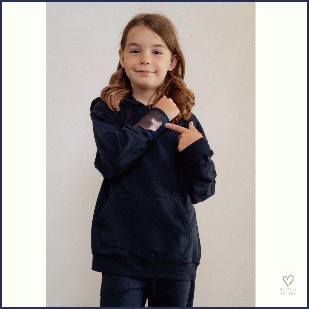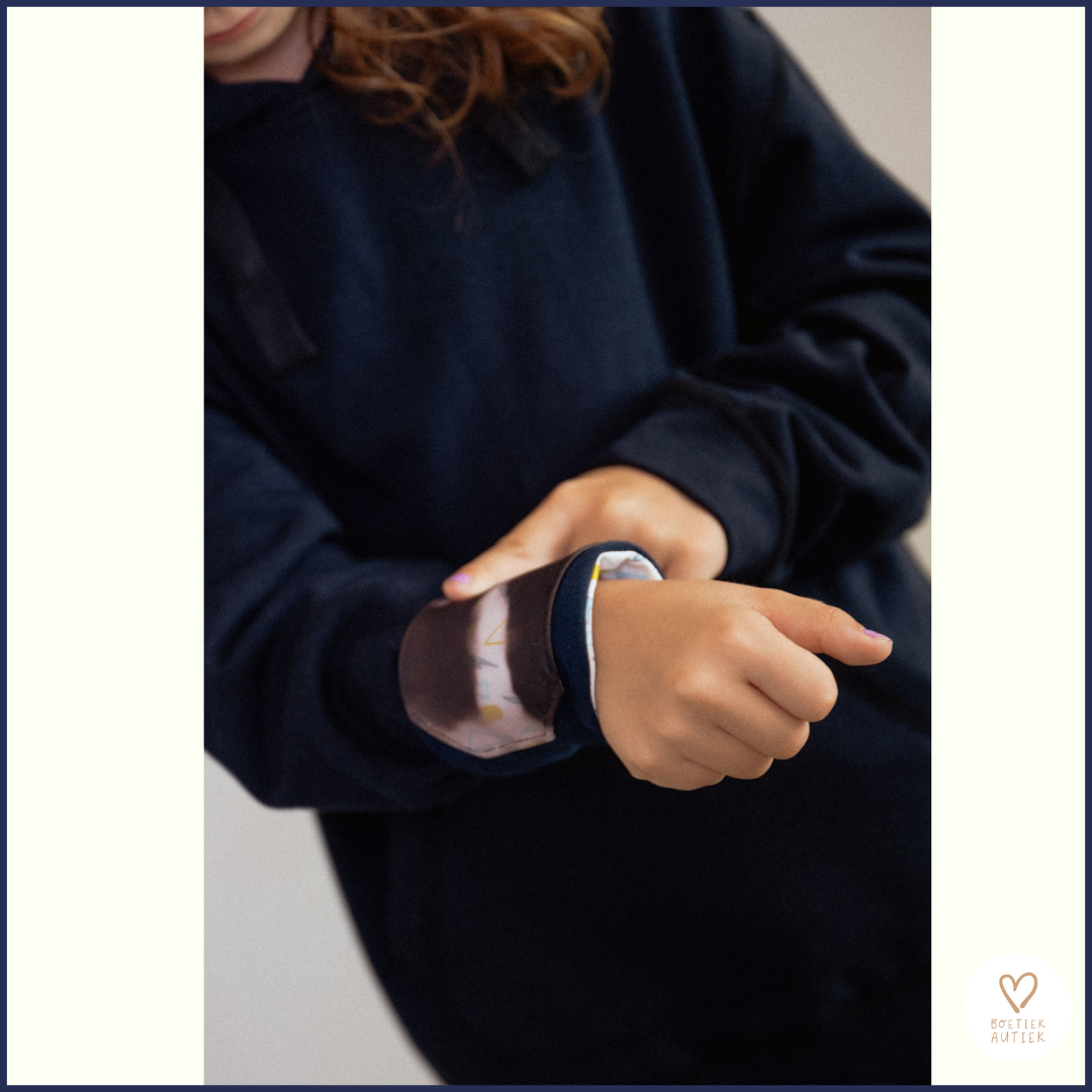 Voor kinderen die moeite hebben met verbaal uiten: bijvoorbeeld bij spanning, overprikkeling of emotionele overbelasting, fungeert de mouw als een visueel en sensorisch signaal. Dit helpt leerkrachten en begeleiders sneller af te stemmen op wat een kind nodig heeft, nog vóór frustratie oploopt.