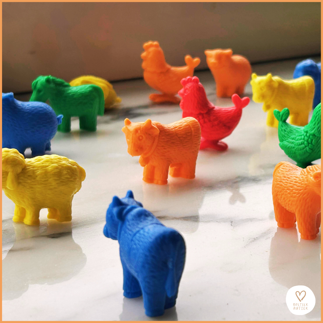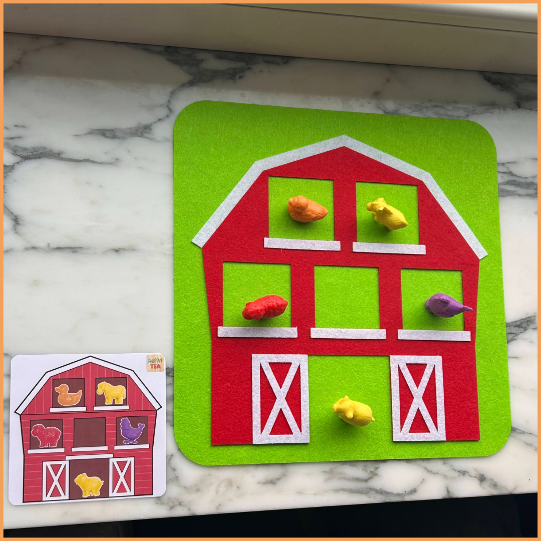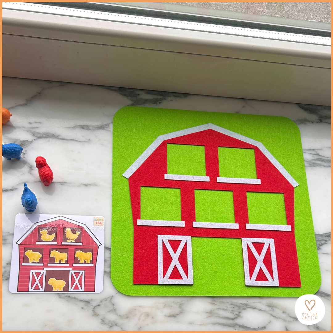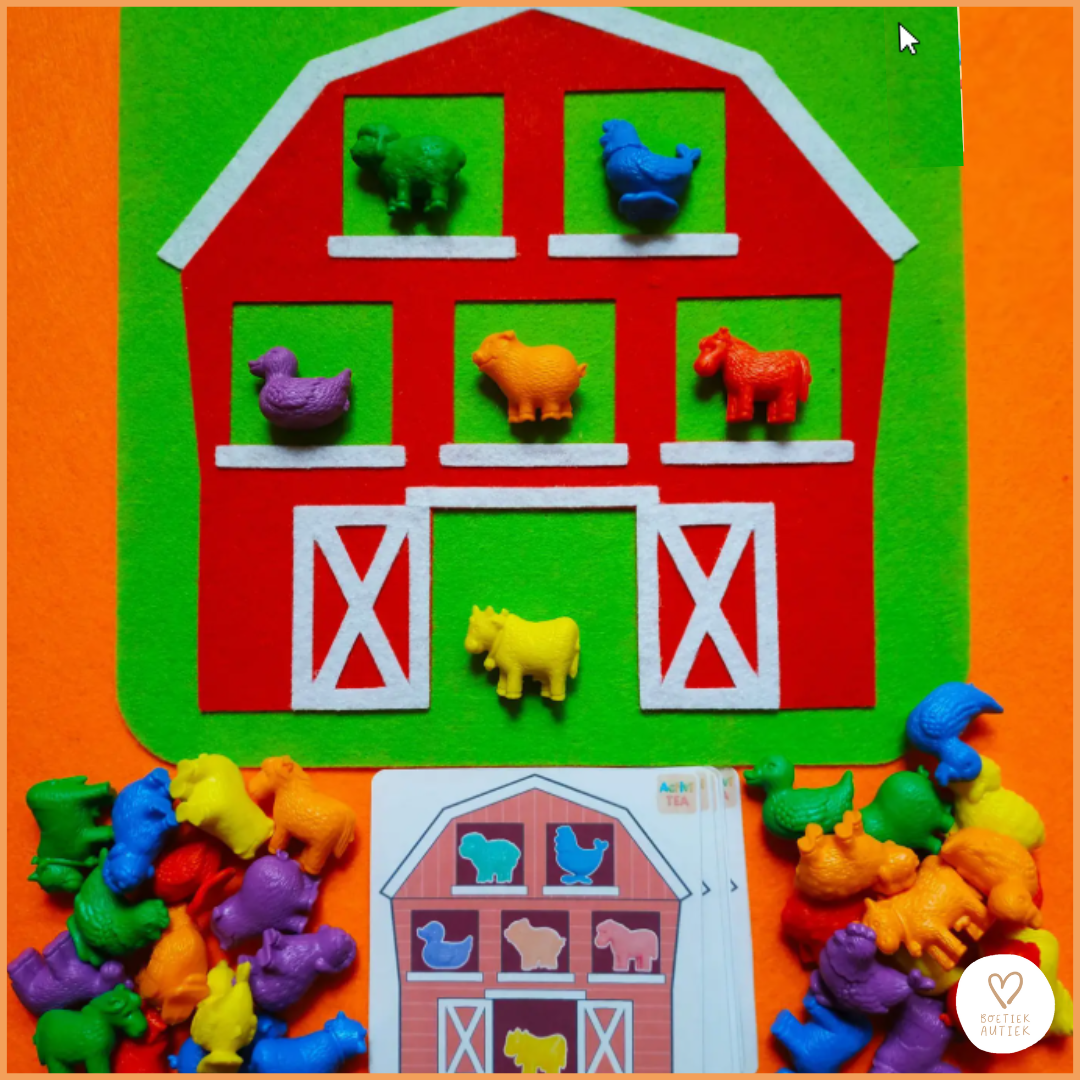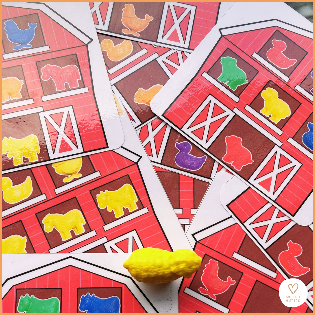 -Vervolgens plaatsen ze de juiste boerderijdieren op de juiste plaats in de stal.