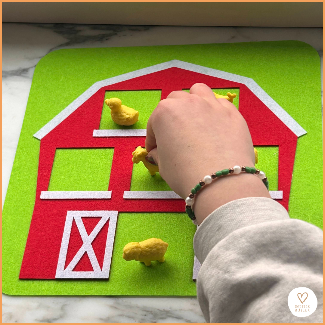 Ontdek de lente op de boerderij met dit educatieve vilten spel waarin kinderen spelenderwijs leren observeren, sorteren en logisch nadenken. Dankzij de zachte materialen en herkenbare boerderijdieren is dit spel een echte favoriet bij jonge kinderen.