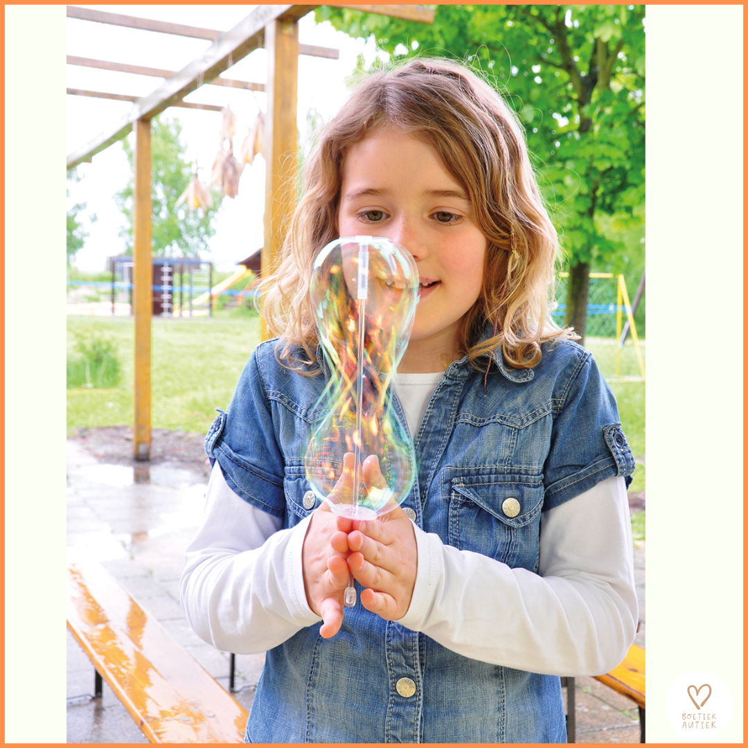 Draai aan het stokje in verschillende richtingen. (zie foto's) Er ontstaan magische vormen met magische kleuren! Maak de vormen groot of klein!