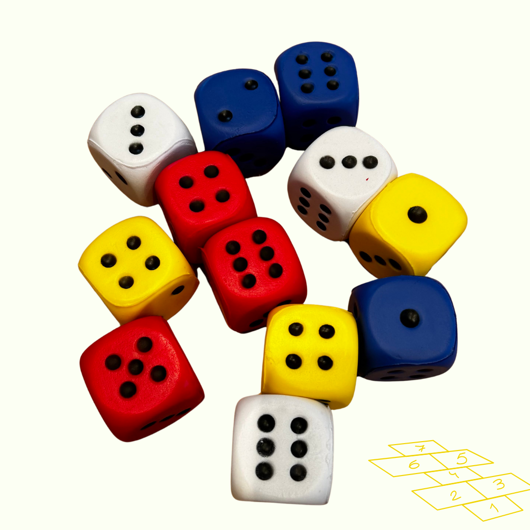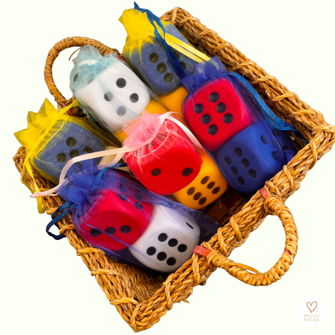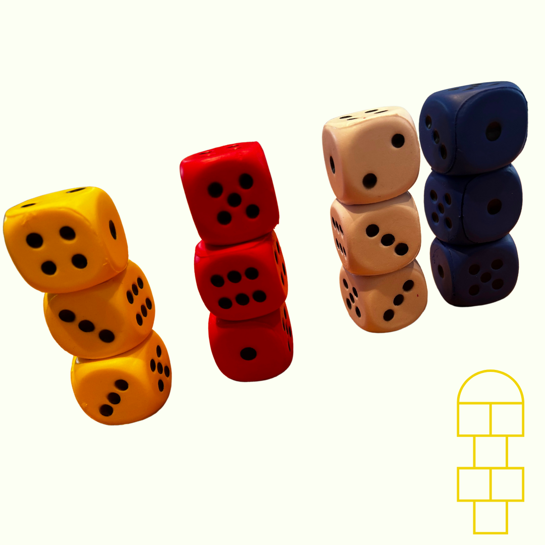 Deze schuimrubberen dobbelstenen voelen zacht en soepel aan.