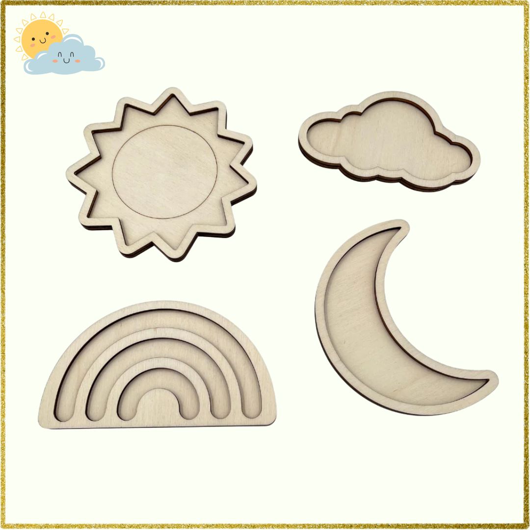 Deze 4-delige set vulvormen in het thema 'Het weer' kan je vullen met tal van materialen: